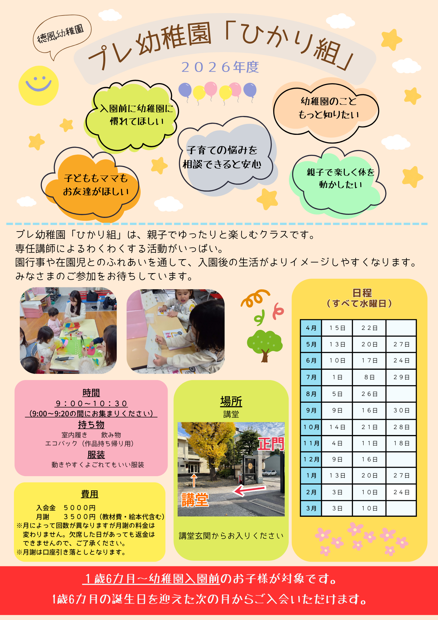 ※通園バスは、ご利用いただけませんので、ご了承ください。
