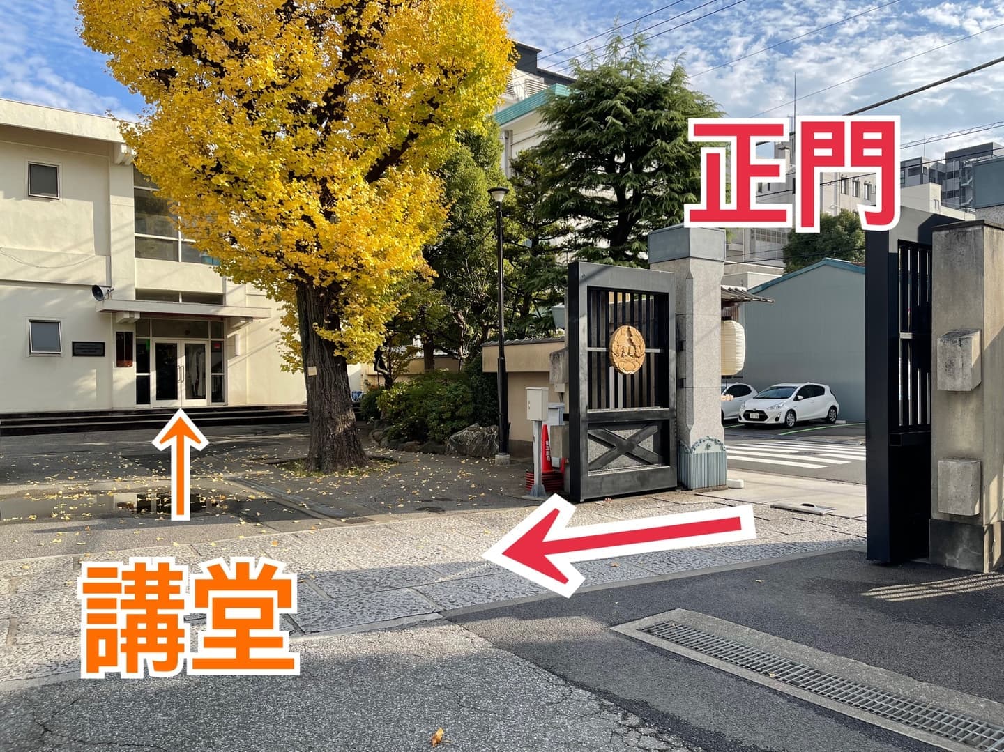 『集団見学』へお越しの方は、講堂玄関からお入りください。